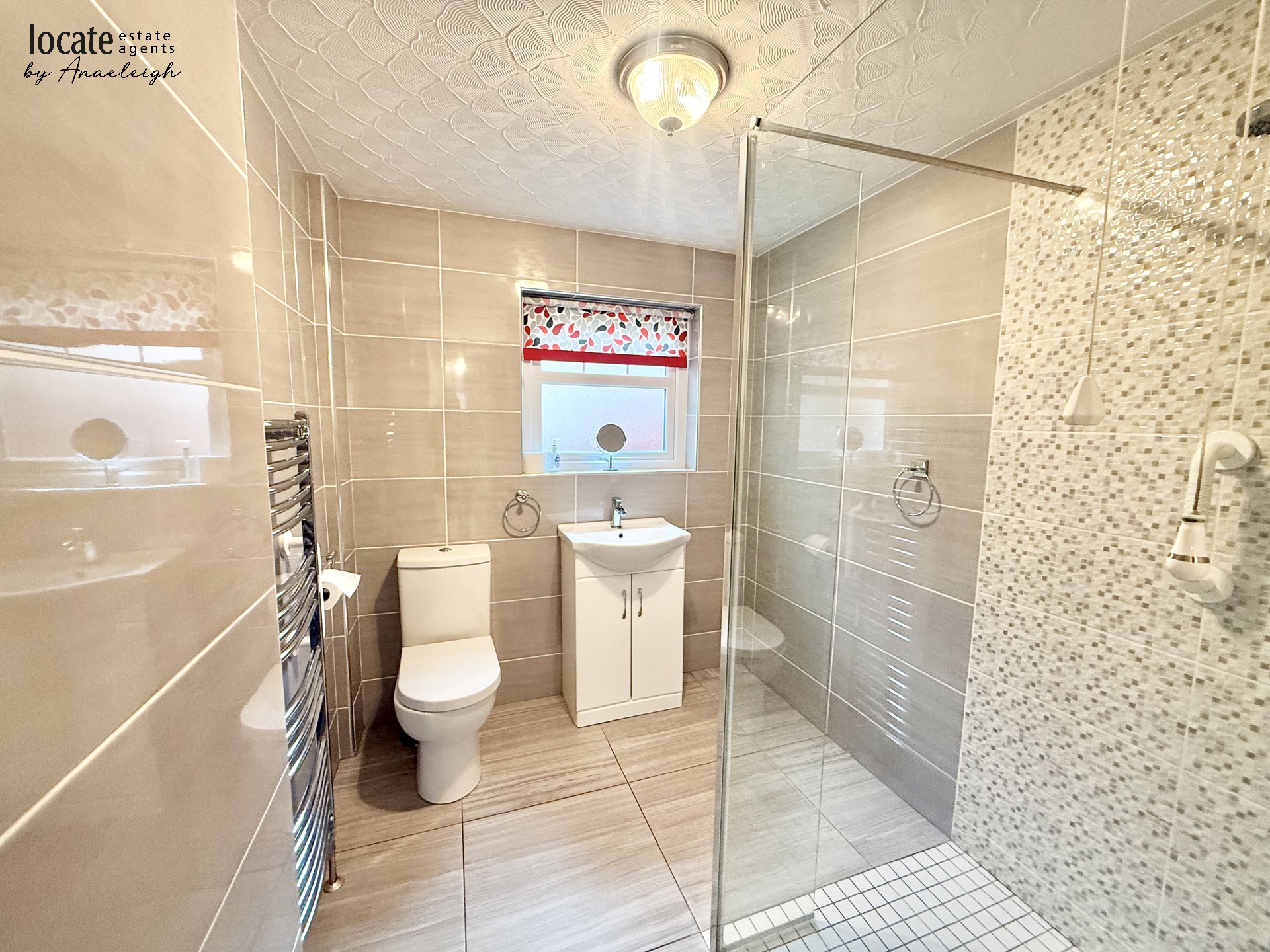 Bathroom | With wc, wash hand basin in vanity, walk in shower, tiled floor, fully tiled walls | |||