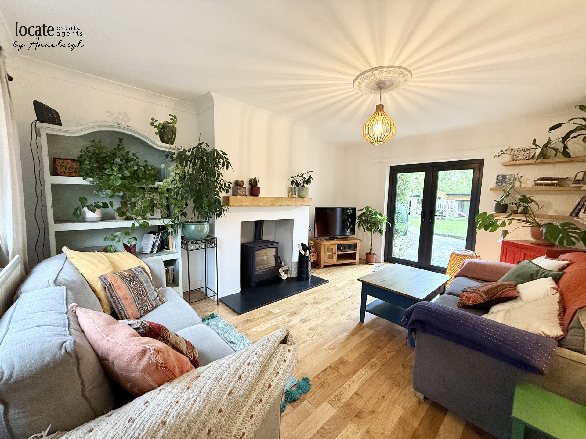 Lounge | 15'11" x 11'8" (4.85m x 3.56m) Solid wooden floor, stove not included, patio doors to rear | |||
