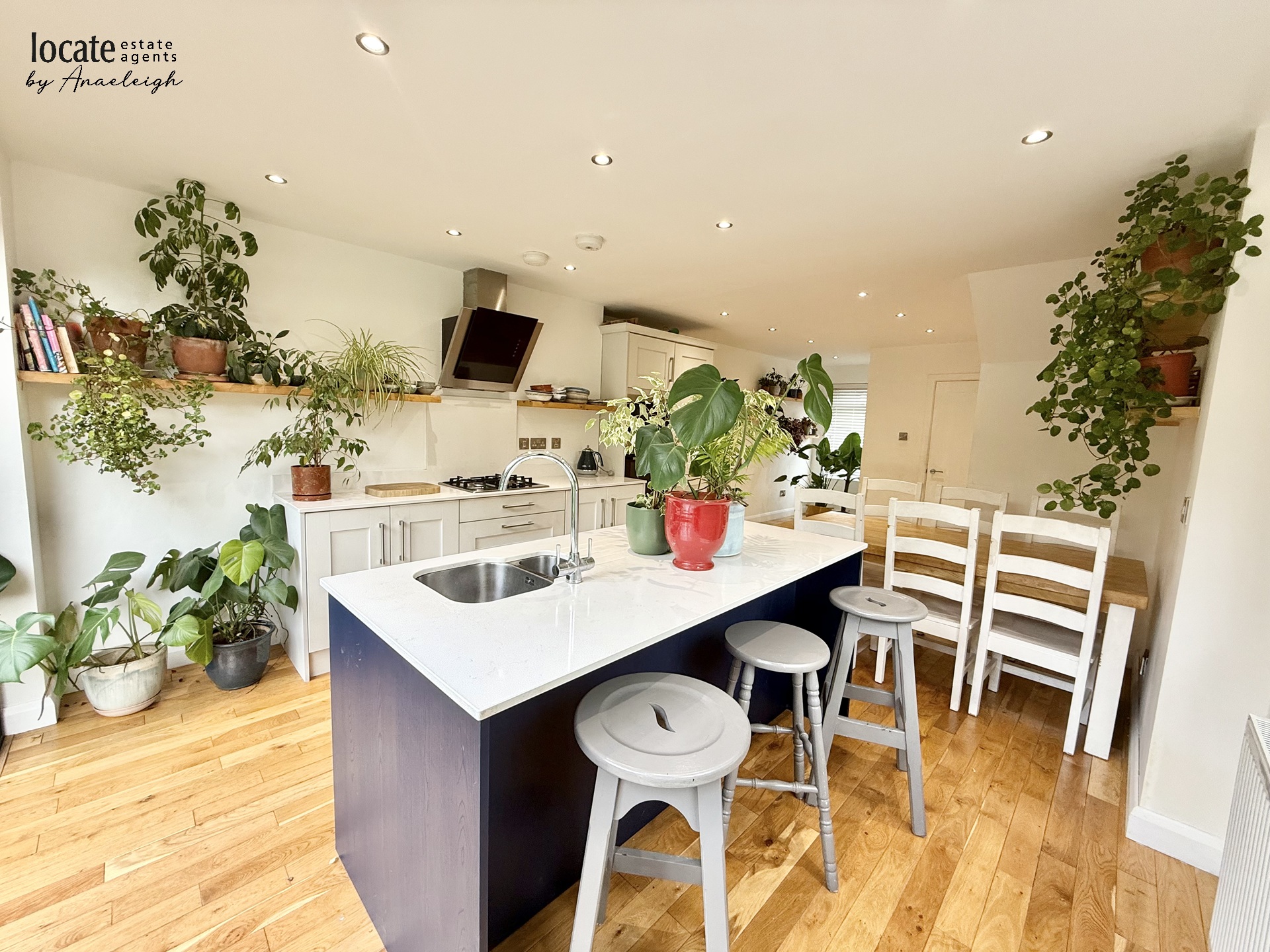Kitchen | 26'9" x 12'4" (8.15m x 3.76m) (To widest points) Eye and low level units, center island, 1 1/2 stainless steel sink unit with mixer tap, gas hob, extractor fan, eye level oven, integrated microwave integrated fridge/freezer, Quartz worktop, understair storage plumbed for washing machine, solid wooden floor, bifolding doors to rear | |||