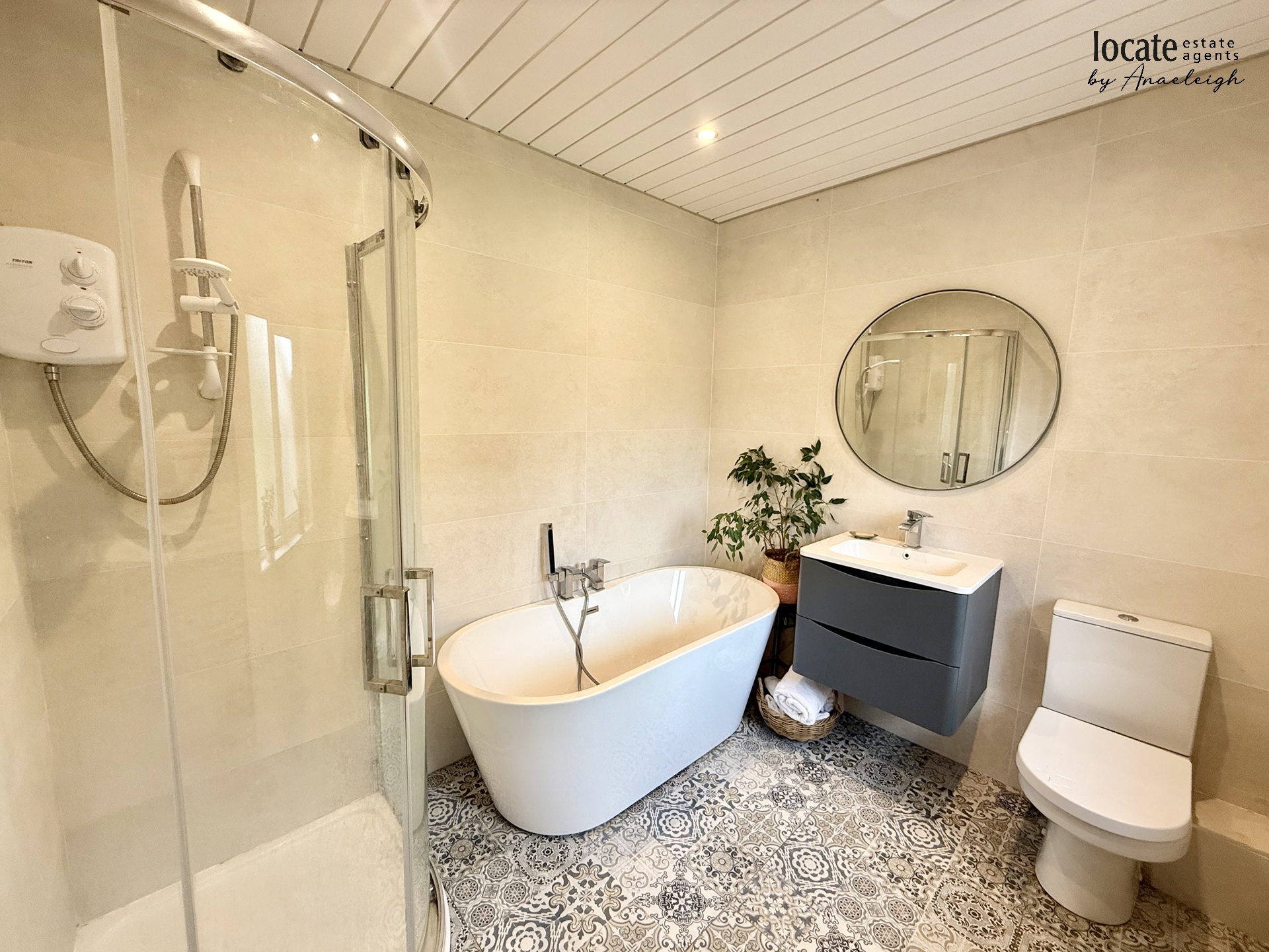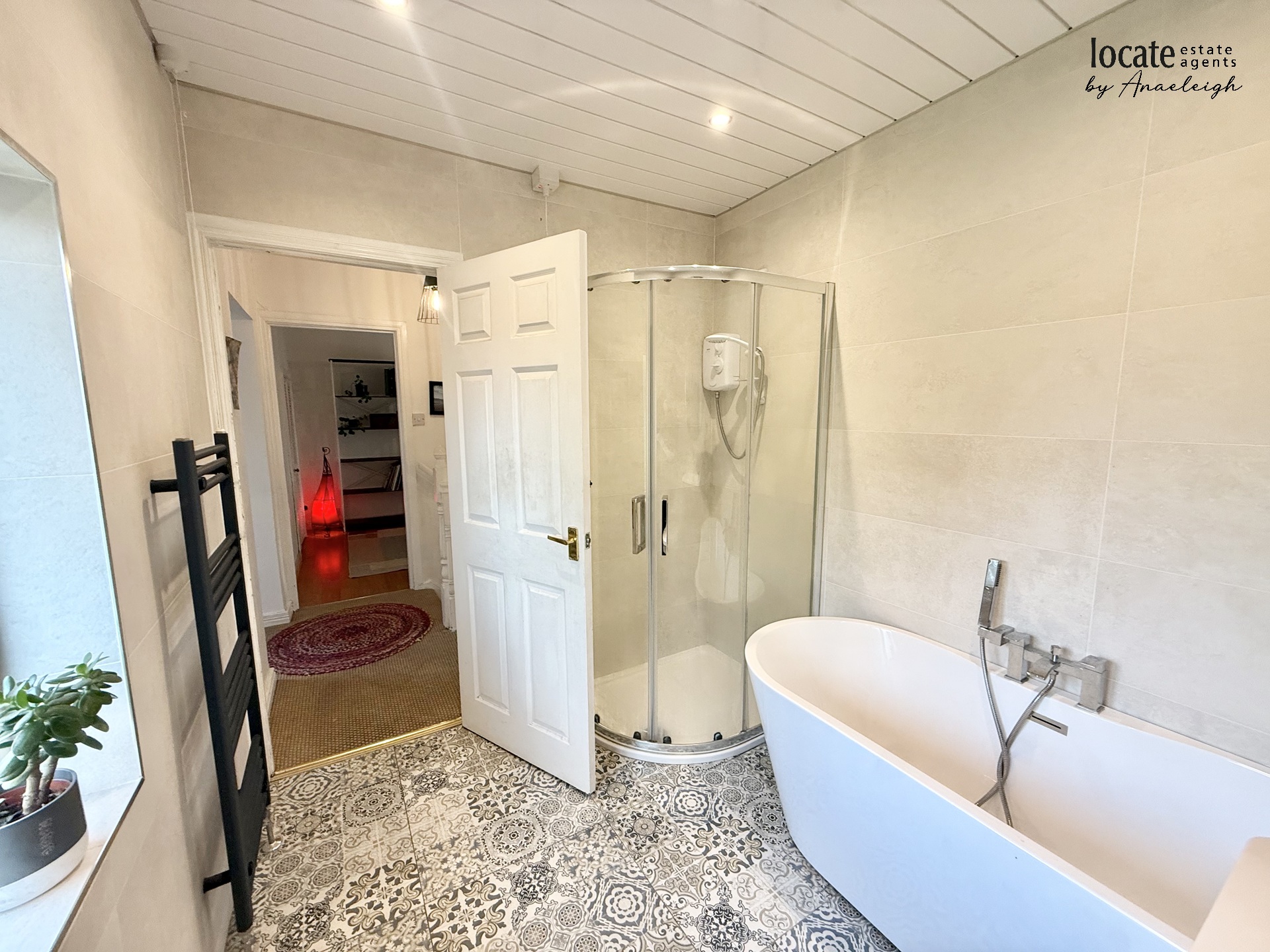 Bathroom | With fre standing bath, wc, wash hand basin, separate shower unit, tiled floor, heated towel rail | |||