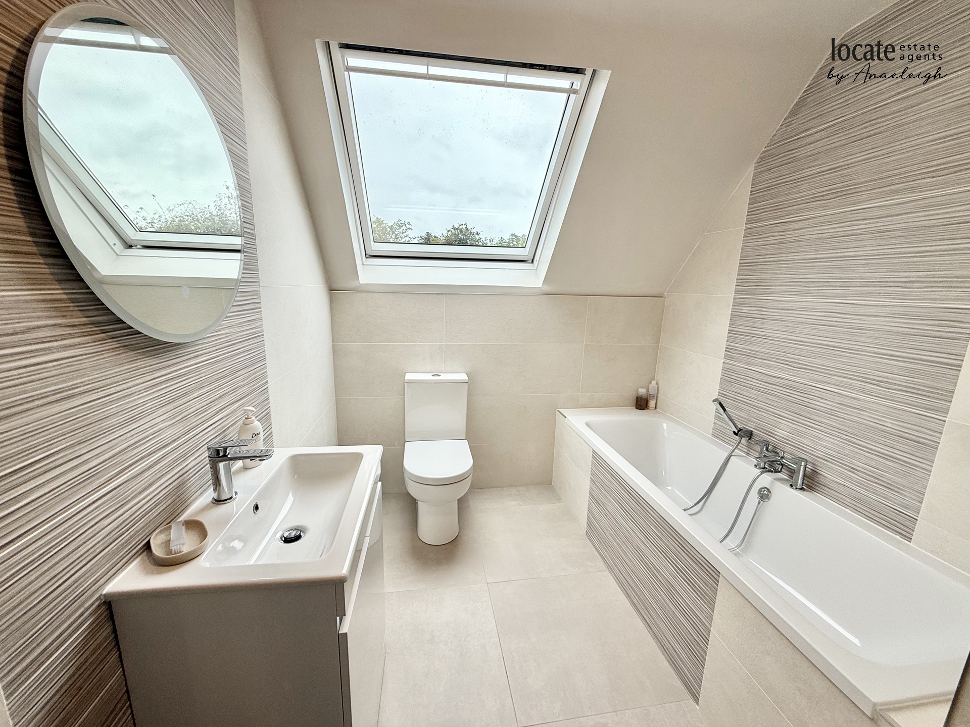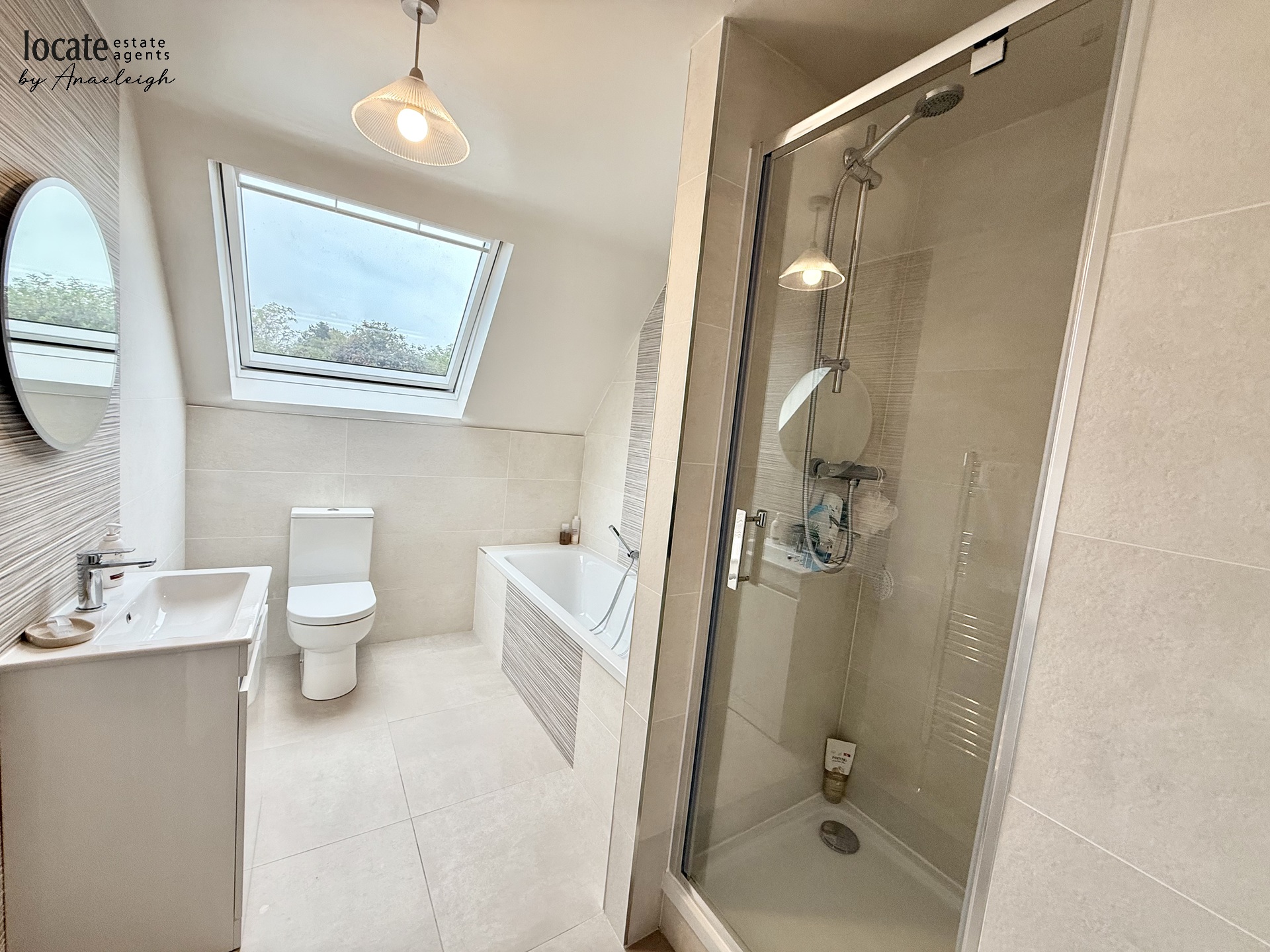Bathroom | With bath, wash hand basin in vanity with mirror, wc, separate shower unit, tiled floor, fully tiled walls | |||
